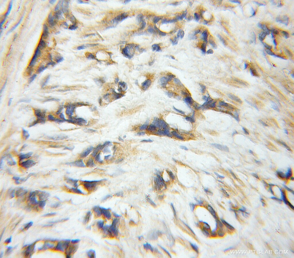 - Immunohistochemistry of paraffin-embedded human prostate cancer using 10291-1-AP (EIF6 antibody) at dilution of 1:50 (under 10x lens).