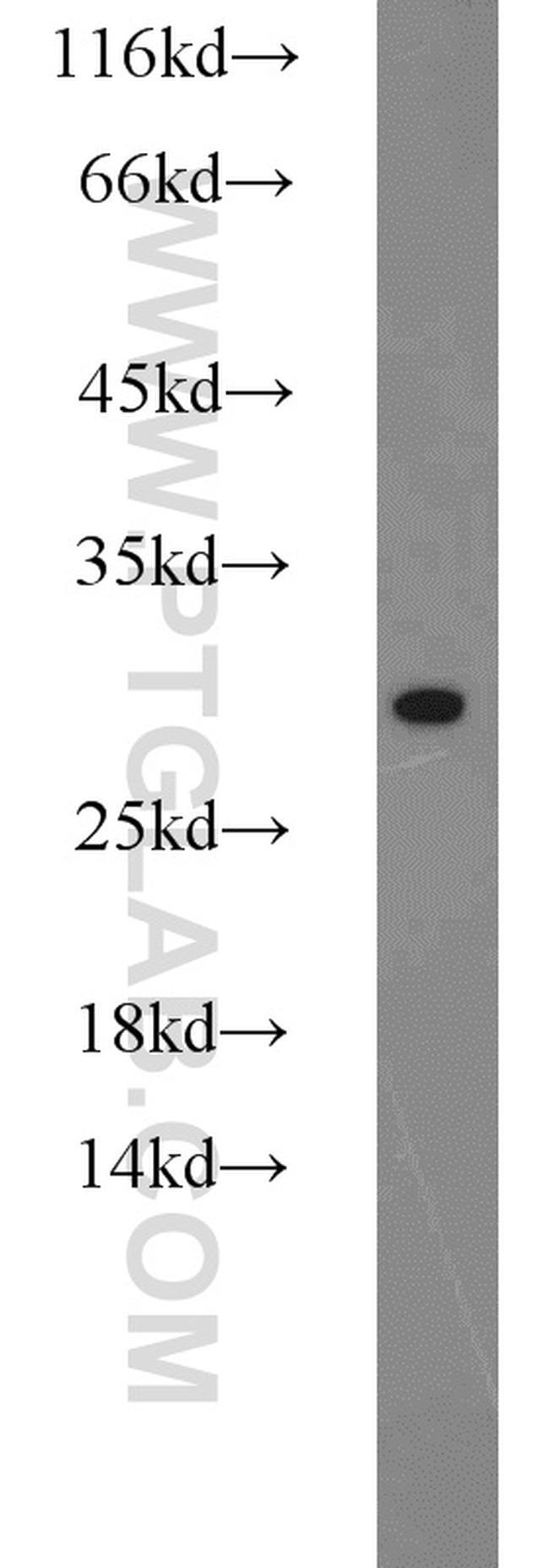 - HepG2 cells were subjected to SDS PAGE followed by western blot with 10291-1-AP (EIF6 antibody) at dilution of 1:300 incubated at room temperature for 1.5 hours.