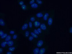 - Immunofluorescent analysis of ( 4% PFA ) fixed HeLa cells using 10291-1-AP (EIF6 antibody) at dilution of 1:50 and Alexa Fluor 488-conjugated AffiniPure Goat Anti-Rabbit IGG (H+L).