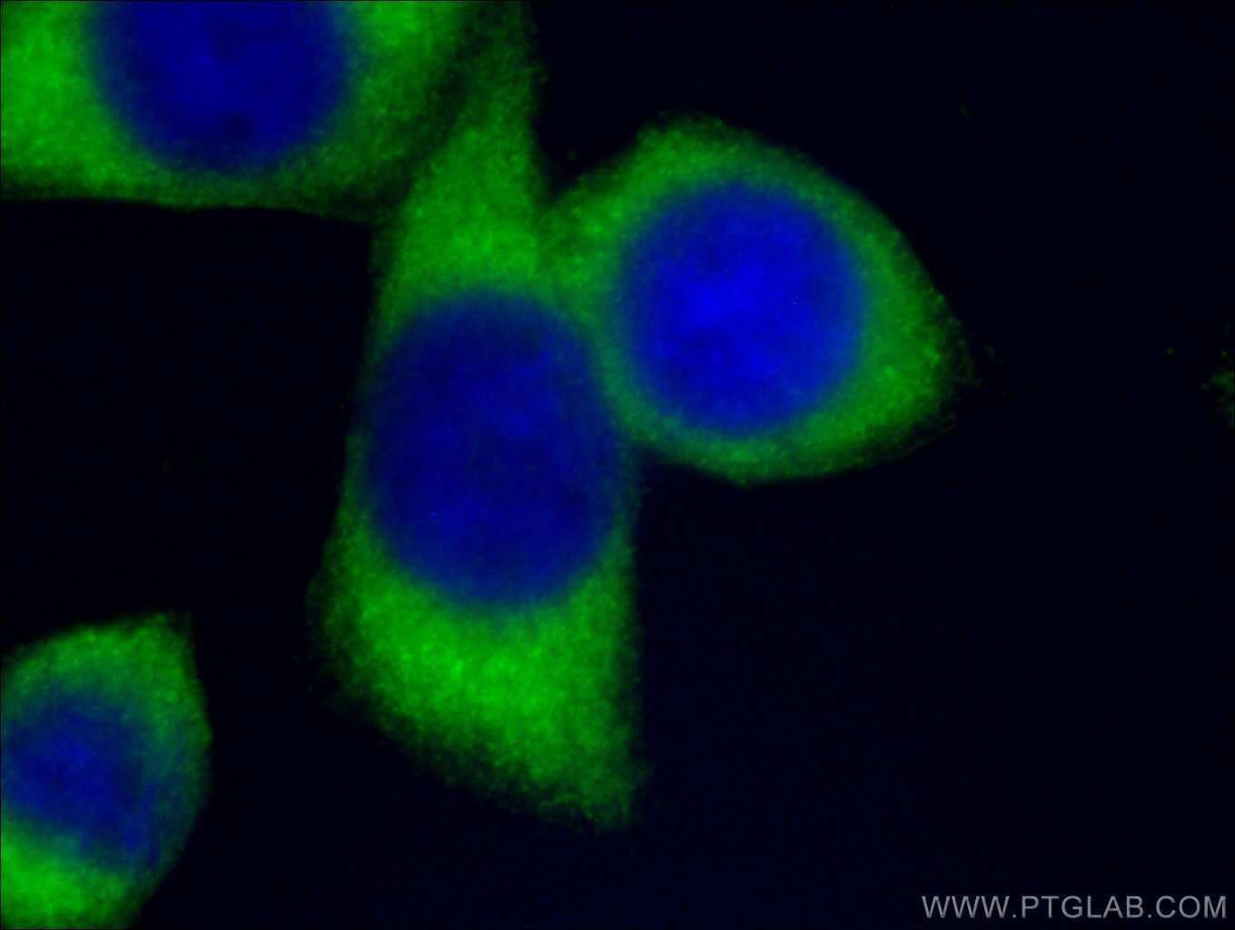 - Immunofluorescent analysis of (-20°C Ethanol) fixed HeLa cells using CL488-66373 (G6PD antibody) at dilution of 1:50.