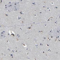 - Immunohistochemical staining of human lateral ventricle shows distinct nucleolar positivity in neuronal cells.