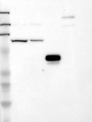 - Western blot analysis of antibody specificity using a routine panel composed of IgG/HSA-depleted human plasma and protein lysates from selected human tissues and cell lines.