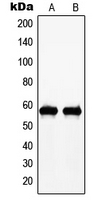 - Western blot analysis of c-Myc (pT58) expression in A431 (A); HeLa (B) whole cell lysates.