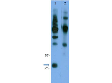 - Immunoprecipitation of rabbit Anti-Cyclin D3. Lane 1: 5µg anti-cyclin D3 antibody/IP. Primary Antibody: Cyclin D3 Mouse mAb. Lane 2: 5µg anti-cyclin D3 antibody/IP. Primary Antibody: Cyclin D2 rabbit pAB. Secondary Antibody: TrueBlot IgG IP beads. Expect: ~32kDa to D3 in lane 1. No reactivity to D2 in lane 2.