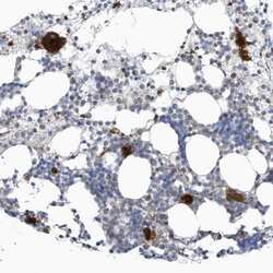 - Immunohistochemical staining of GPATCH3 in human bone marrow using a GPATCH3 Polyclonal Antibody (Product # PA5-56918) shows cytoplasmic positivity in hematopoietic cells.