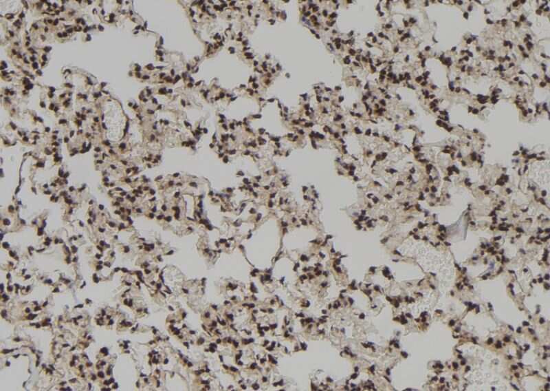 - Immunohistochemistry analysis of paraffin-embedded RNaseH1 in rat lung tissue. Antigen retrieval was performed using citrate buffer. Samples were blocked with blocking buffer (1.5 hr, 22°C), incubated with RNaseH1 polyclonal antibody (Product # PA5-100003) using a dilution of 1:100 (1.5 hr, 22°C), followed by HRP conjugated goat anti-rabbit.