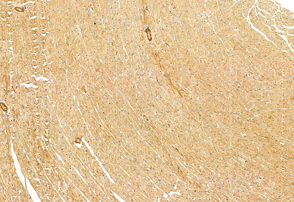 - Immunohistochemistry analysis of RNaseH1 in rat heart tissue. The sample was formaldehyde fixed and a heat mediated antigen retrieval step in citrate buffer was performed. Samples were incubated with RNaseH1 polyclonal antibody (Product # PA5-100003) using a dilution of 1:100 (4°C overnight) followed by HRP conjugated anti-Rabbit secondary antibody.