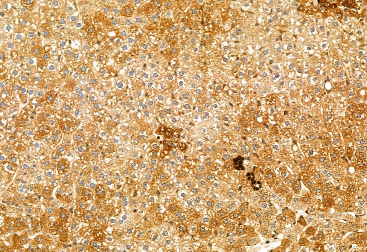 - Immunohistochemistry analysis of RNaseH1 in rat liver tissue. The sample was formaldehyde fixed and a heat mediated antigen retrieval step in citrate buffer was performed. Samples were incubated with RNaseH1 polyclonal antibody (Product # PA5-100003) using a dilution of 1:100 (4°C overnight) followed by HRP conjugated anti-Rabbit secondary antibody.