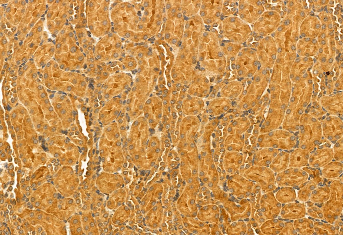 - Immunohistochemistry analysis of RNaseH1 in rat kidney tissue. The sample was formaldehyde fixed and a heat mediated antigen retrieval step in citrate buffer was performed. Samples were incubated with RNaseH1 polyclonal antibody (Product # PA5-100003) using a dilution of 1:100 (4°C overnight) followed by HRP conjugated anti-Rabbit secondary antibody.