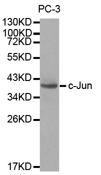 - Western Blot: extracts of PC3 cells stained with ARG55192 anti-c-Jun antibody.