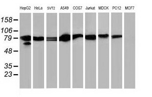 - Western blot analysis of extracts (35 µg) from 9 different cell lines by using anti-STAT5A monoclonal antibody.