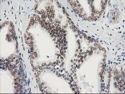 - Immunohistochemical staining of paraffin-embedded Carcinoma of Human prostate tissue using anti-STAT5A mouse monoclonal antibody. (Heat-induced epitope retrieval by 10mM citric buffer, pH6.0, 100°C for 10min, TA502736)