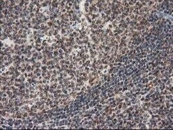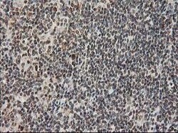 - Immunohistochemical staining of paraffin-embedded human lymphoma tissue using anti-STAT5A mouse monoclonal antibody. (Heat-induced epitope retrieval by 10mM citric buffer, pH6.0, 100°C for 10min, TA502736)