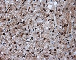 - Immunohistochemical staining of paraffin-embedded liver tissue using anti-ACLY mouse monoclonal antibody. (GTX84967, Dilution 1:50)