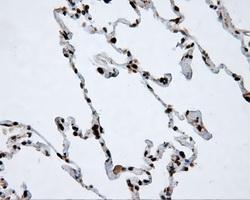 - Immunohistochemical staining of paraffin-embedded lung tissue using anti-ACLY mouse monoclonal antibody. (GTX84967, Dilution 1:50)