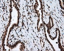 - Immunohistochemical staining of paraffin-embedded endometrium tissue using anti-ACLY mouse monoclonal antibody. (GTX84967, Dilution 1:50)