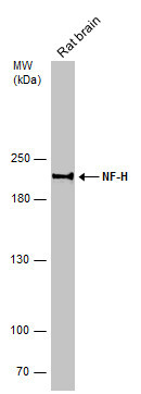 - Whole cell extract (30 ?g) was separated by 5% SDS-PAGE, and the membrane was blotted with NF-H antibody (GTX110065) diluted at 1:500. The HRP-conjugated anti-rabbit IgG antibody (GTX213110-01) was used to detect the primary antibody.