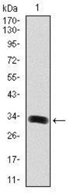 - Western Blot: GAB1 Antibody (1A7) [NBP2-37742] - Analysis using GAB1 mAb against human GAB1 (AA: 661-724) recombinant protein. (Expected MW is 32.4 kDa)