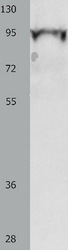 - Predicted band size: 76 kDa . Positive control: 293T cell lysate. Recommended dilution: 1/200-1000. (Gel: 8%SDS-PAGE Lysate: 40 ug Primary antibody: 1/400 dilution Secondary antibody: Goat anti Rabbit IgG - H&L (HRP) at 1/10000 dilution Exposure time: 15 seconds)