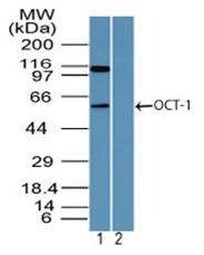 - Western blot analysis of OCT-1 in human HL60 cell lysate using AP22073PU-N at 4 µg/ml.