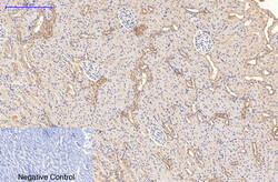 - Immunohistochemical analysis of paraffin-embedded Rat-kidney tissue. 1, CD21 monoclonal antibody (2C5) was diluted at 1:200 (4°C, overnight). 2, Sodium citrate pH 6.0 was used for antibody retrieval (>98°C, 20min). 3, Secondary antibody was diluted at 1:200 (room tempeRature, 30min). Negative control was used by secondary antibody only.