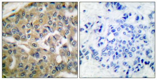 - Immunohistochemical analysis of paraffin-embedded human breast carcinoma tissue using FHIT antibody . The picture on the right is treated with the synthesized peptide.