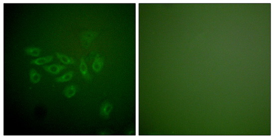 - Immunofluorescence analysis of A549 cells, using FHIT antibody . The picture on the right is treated with the synthesized peptide.