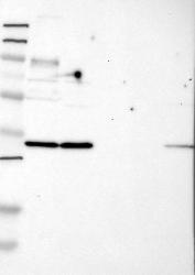 - Western blot analysis of antibody specificity using a routine panel composed of IgG/HSA-depleted human plasma and protein lysates from selected human tissues and cell lines.