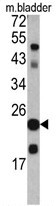 - Western blot analysis of TAGLN antibody (C-term) (AP17773PU-N) in mouse bladder tissue lysates (35ug/lane). TAGLN (arrow) was detected using the purified Pab.