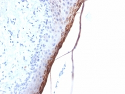 - IHC testing of FFPE human skin with recombinant FLG antibody (clone FLG/1957R). Required HIER: boil tissue sections in 10mM citrate buffer, pH 6, for 10-20 min followed by cooling at RT for 20 min.