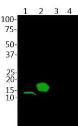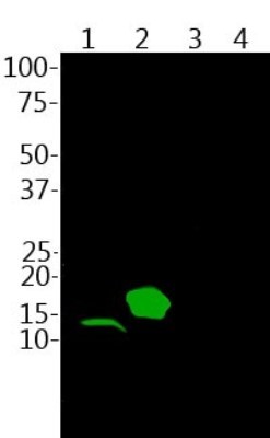 - Western Blot: Parvalbumin Antibody [NBP2-50036] - Analysis of mouse skeletal muscle lysate (lane 1) and His-tagged recombinant proteins: parvalbumin (lane 2), calretinin (lane 3) and calbindin (lane 4) were probed with NBP2-50036 at 1:2,500.
