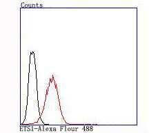 - Flow cytometric analysis of Jurkat cells with ETS1 (2A1) Monoclonal Antibody (bsm-54081R) at 1:100 dilution (red) compared with an unlabeled control (cells with out incubation with primary antibody; black).
