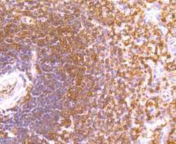 - Paraformaldehyde-fixed and paraffin-embedded Human Spleen tissue incubated with ETS1 (2A1) Monoclonal Antibody (bsm-54081R) at 1:100, overnight at 4°C, followed by a conjugated secondary antibody and DAB staining. Counterstained with hematoxylin.