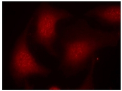 - Figure 3. Immunofluorescence staining of methanol-fixed HeLa cells using Rb (phospho-Ser795) antibody (Red).