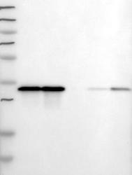 - Western blot analysis of antibody specificity using a routine panel composed of IgG/HSA-depleted human plasma and protein lysates from selected human tissues and cell lines.