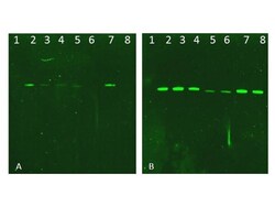 - Western Blot of Rabbit AKT Antibody. Lane 1: NIR MW protein ladder. Lane 2: AKT1, recombinant. Lane 3: AKT1, phosphatase-treated. Lane 4: AKT1, mutant T308A/S473A. Lane 5: AKT2, recombinant. Lane 6: AKT2, phosphatase-treated. Lane 7: AKT3, recombinant. Lane 8: AKT3, phosphatase-treated. Load: 50ng per lane. Blot A: 600-401-269 Anti-Akt pT308 used at 1:2270, Blot B: 100-401-401 Anti-Akt used 1:1000.