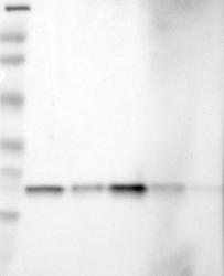 - Western blot analysis of antibody specificity using a routine panel composed of IgG/HSA-depleted human plasma and protein lysates from selected human tissues and cell lines.