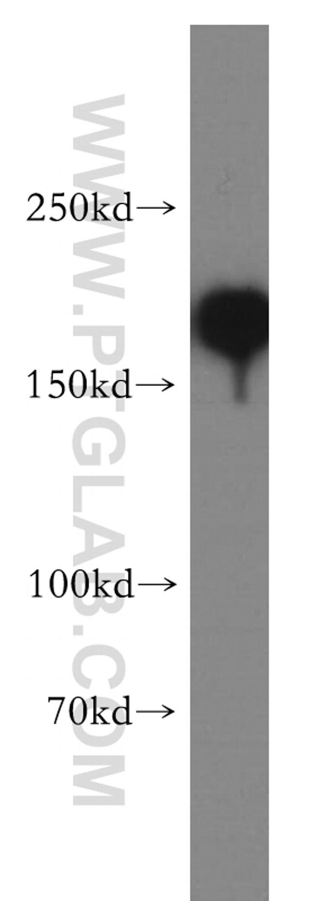 - HeLa cells were subjected to SDS PAGE followed by western blot with 21634-1-AP (SMARCA4/BRG1 antibody) at dilution of 1:800 incubated at room temperature for 1.5 hours.