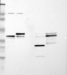 - Western blot analysis of antibody specificity using a routine panel composed of IgG/HSA-depleted human plasma and protein lysates from selected human tissues and cell lines.