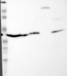 - Western blot analysis of antibody specificity using a routine panel composed of IgG/HSA-depleted human plasma and protein lysates from selected human tissues and cell lines.