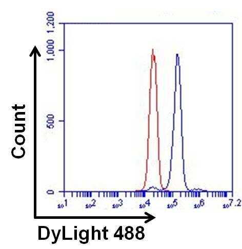 - Flow cytometry analysis of ERK2 on HeLa cells. Cells were fixed, permeabilized, and stained with a p42 MAP Kinase/ERK2/MAPK1 monoclonal antibody (Product # MA1-099, blue histogram) or a Mouse IgG2a isotype control (Product # MA1-10418, red histogram) at a concentration of 1 µg/mL. After incubation of the primary antibody for at least 1 hour on ice, the cells were stained with a DyLight 488-conjugated goat anti-mouse IgG secondary antibody (Product # 35502) for at least 30 minutes on ice. A representative 10,000 cells were acquired for each sample.