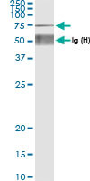 - Western Blot analysis of XRCC6 expression in transfected 293T cell line (H00002547-T01) by XRCC6 MaxPab polyclonal antibody.Lane 1: XRCC6 transfected lysate(69.80 KDa).Lane 2: Non-transfected lysate.