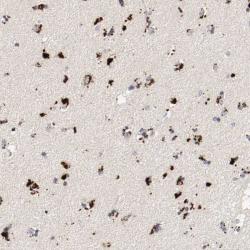 - Immunohistochemical staining of human lateral ventricle shows strong cytoplasmic positivity(granular pattern) in neuronal cells.