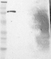 - Single band corresponding to the predicted size in kDa (+/-20%).