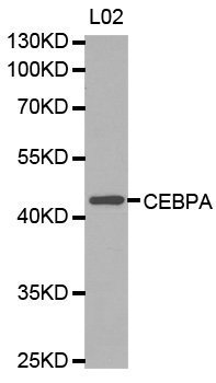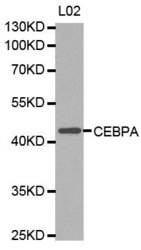 - Western blot analysis of extracts of L02 cells lines, using CEBPA antibody.