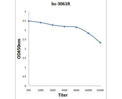 - Antigen: bs-3061P, 0.2ug/100ul Primary: Antiserum, 1:500, 1:1000, 1:2000, 1:4000, 1:8000, 1:16000, 1:32000; Secondary: HRP conjugated Goat-Anti-Rabbit IgG(bs-0295G-HRP) at 1:5000; TMB staining; Read the data in Microplate Reader by 450nm.