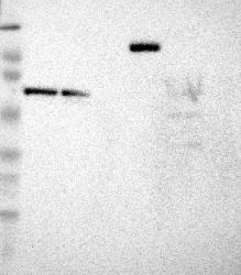 - Western blot analysis of antibody specificity using a routine panel composed of IgG/HSA-depleted human plasma and protein lysates from selected human tissues and cell lines.