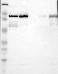 - Western blot analysis of antibody specificity using a routine panel composed of IgG/HSA-depleted human plasma and protein lysates from selected human tissues and cell lines.