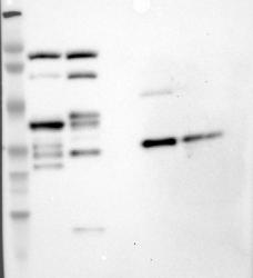 - Western blot analysis of antibody specificity using a routine panel composed of IgG/HSA-depleted human plasma and protein lysates from selected human tissues and cell lines.