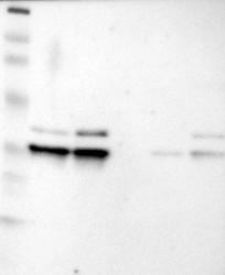 - Western blot analysis of antibody specificity using a routine panel composed of IgG/HSA-depleted human plasma and protein lysates from selected human tissues and cell lines.